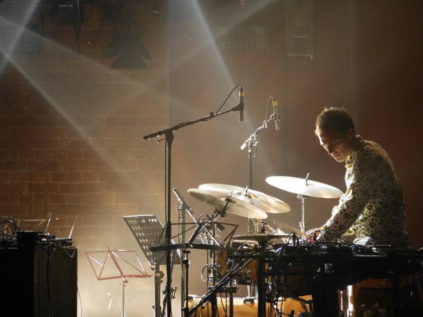 Iain BallamyFood, a duo of saxophonist Iain Ballamy and drummer Thomas Strønen, came next. Their improvised, trance-like exploration of rhythm and texture was given theatrical heft by the setting, the two men isolated in space, like ceremonial priests in a maze of lights and smoke. Both players have a desk of loops and effects as well as acoustic instruments; both experiment with the softest acoustic sound, as well as brain-curdling rhythmic loops. Now signed to ECM, Ballamy’s acoustic playing has moments of likeness to his ECM colleague Jan Garbarek, though that smoothness is not the primary aesthetic, and is quickly obliterated by one of Strønen’s depth charges.