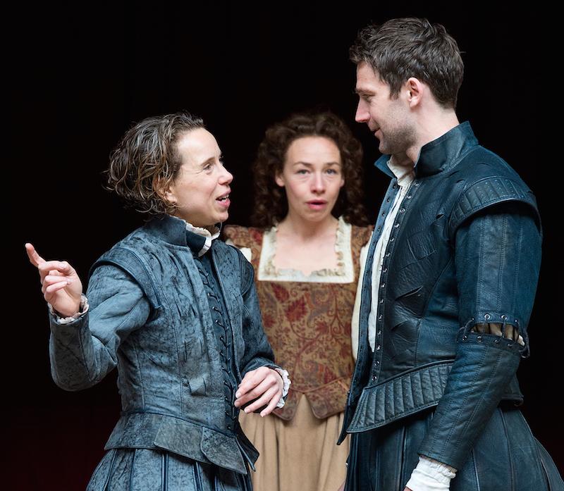 Shakespeare’s comic take on pastoral romance begins with a flurry of banishments. Usurpring Duke Frederick exiles brother Duke Senior (both David Beames) to Arden, then packs off Senior’s daughter Rosalind (Michelle Terry, pictured below with Ellie Piercy) when she overshadows his daughter Celia (Piercy); the devoted cousin flees too, along with fool Touchstone (Daniel Crossley). The final émigré is Orlando (Simon Harrison), denied his inheritance by brother Oliver. The exiled soul mates reunite, though Orlando is in ignorance, as Rosalind, fearing trouble on the road, has disguised herself as a boy. She undertakes to cure Orlando of his crippling devotion by having him woo her as “Rosalind”.