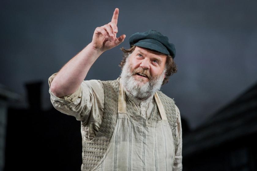 The production itself is faithful to the atmosphere of the film, and director/designer Antony McDonald does wonders with fairly basic staging to create all the different indoor and outdoor spaces with speedy scene changes. He is well served by Gabrielle Dalton’s costumes and Lucy Carter’s lighting. There are various intricately worked out numbers with dozens of people on stage, including an impressive dance troupe, which run naturally and exuberantly – and presumably hide many hours of rigorous rehearsal. Tevye’s dream is a particular delight.