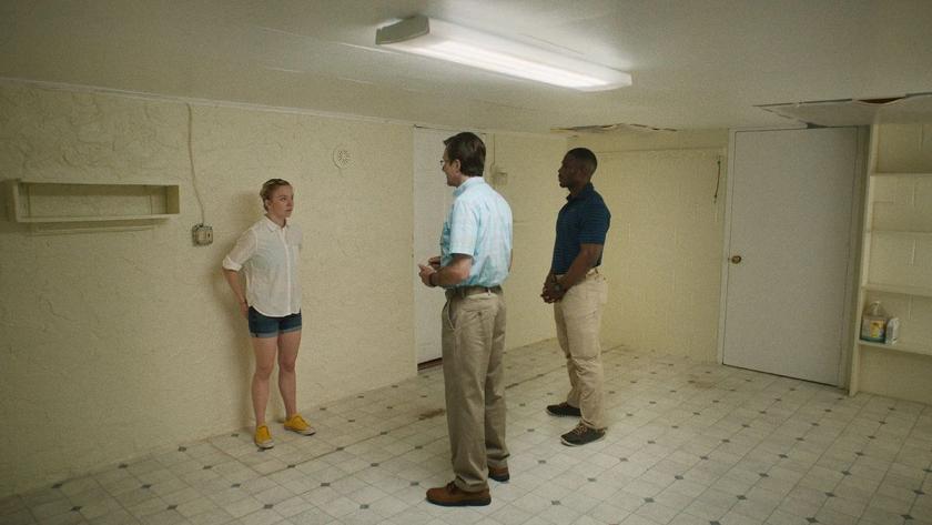 Like Satter’s 2019 play Is This a Room, Reality – which she co-wrote with James Paul Dallas – was adapted from the transcript of Taylor and fellow FBI agent Justin Garrick’s questioning of Winner, mostly in the empty back bedroom of her modest bungalow, a space rendered forbidding by its stark white walls and the way cinematographer Paul Yee manipulates it to show the Feds hemming in their prey.