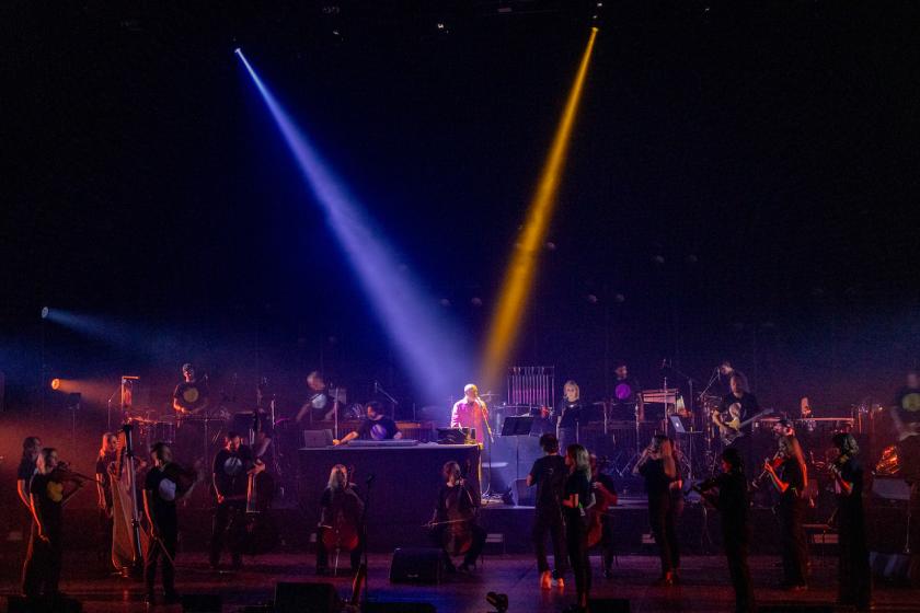 Brian Eno is one of the very best practitioners of electronica – he's been the gentle spearhead of what has become known as ambient music – but he’s also worked as an acclaimed producer with bands such as U2 and Coldplay, and has indeed collaborated with rock musicians on his own projects (David Byrne and Karl Hyde come to mind). But this is something different. There is plenty of scope for playing with tone, timbre and subtle distortion when working with machine-produced sounds, but the freewheeling and decidedly experimental group of young musicians, directed with a mixture of eccentricity and inspiration by Kristjan Järvi, adds a palette of dimensions that extend the musical universe that is very much Eno’s own.