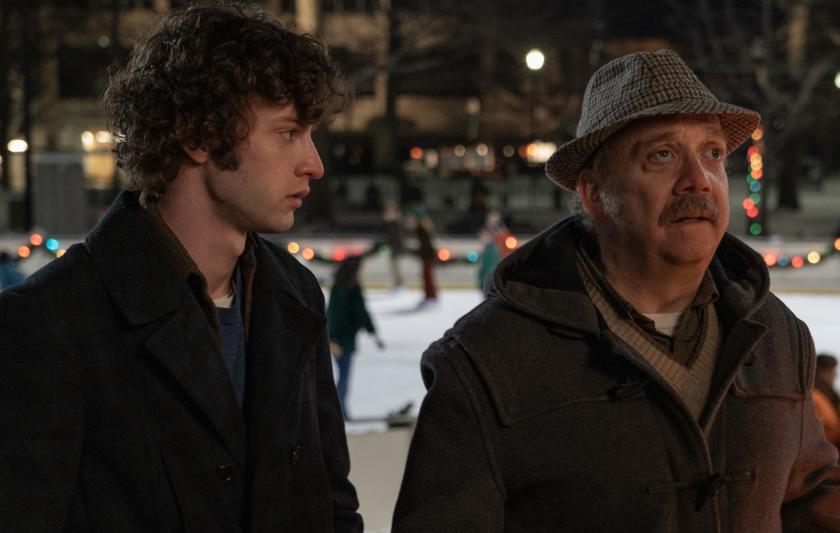 When Hunham is left supervising five boys over the Christmas break – the holdovers – he is thrown together with his B+ student, Angus Tully (Dominic Sessa), whose mother phones at the last minute to say he won’t be going on holiday in St Kitts with her as she and her new husband need some time alone. Tully is a skinny teenager with an odd sophistication and a cynical outlook on life. He and Hunham are further thrown together when the parent of one of the holdovers whisks all the boys away on a skiing trip, but not Tully, whose mother isn’t contactable to give permission. Which says a lot about the source of his cynicism.