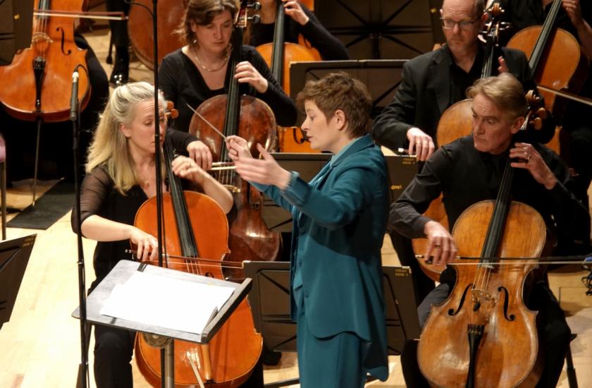 Bruckner brought a chorus of four “Wagner tubas” to the mix in this symphony (as he did again for the Eighth), using them particularly in his Adagio movement with the bass tuba beneath. Conductor Anja Bihlmaier had the bass tuba up sticks from his familiar spot alongside the trombones and join them (and the horns) for that movement, then move back again for the remainder of the work: those listening on Radio 3 in two months’ time with good stereo may be able to track his spatial transitioning.