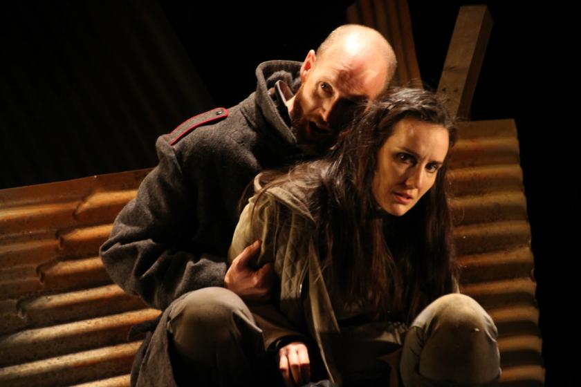 The plot, however, is several centuries behind, tangled in off-puttingly allegorical thickets, and proceeding by turns with ponderous circumlocution then bewildering rapidity. The tale of knight-errant Amadis, his love for Oriane, bitter rivalry with Arcalaüs and entanglement with Arcalaüs’ sister Arcabonne (whom he rescued, having killed their brother Ardan Canil) belongs wholeheartedly to the late Middle Ages. Director Jack Furness does his best to bring it up to date with a set bestrewn with war-torn sheets of corrugated iron, while shards dangle from above.