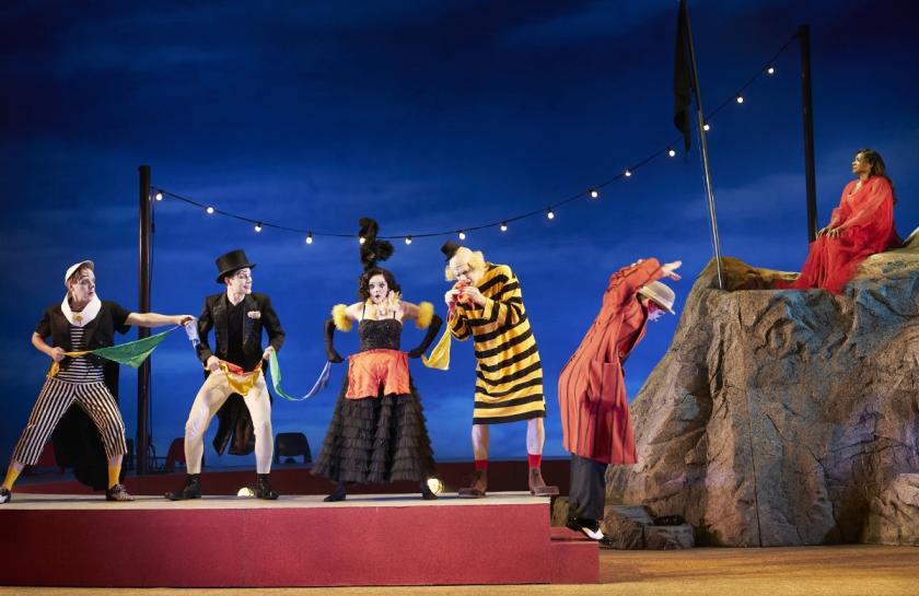 As the burlesque troupe, we first meet Zerbinetta, sung and danced by Jennifer France delightfully (and with her greatest scene also still to come), and then Truffaldino, brilliantly acted by John Savournin, Harlequin (Dominic Sedgwick), Scaramuccio (Alex Banfield) and Brighella (Adrian Dwyer).