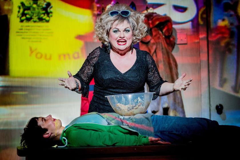 After an underwhelming first half, everything suddenly springs to life in Act 3, largely due to the presence of Susan Bullock as the Witch, a terrifying vision in fur coat and sunglasses. She’s terrific, an adrenalin shot in human form. Her performance is just hammy enough, simultaneously funny and terrifying. First spotted peering through a window, she bursts in to catch Katie Bray’s Hansel and Fflur Wyn’s Gretel greedily wolfing down a sponge cake. Bullock towers over them; you suspect that she’d happily devour them raw. The neatest update is her substitution of an electric whisk for a magic wand. Rarely has a kitchen implement seemed so menacing.