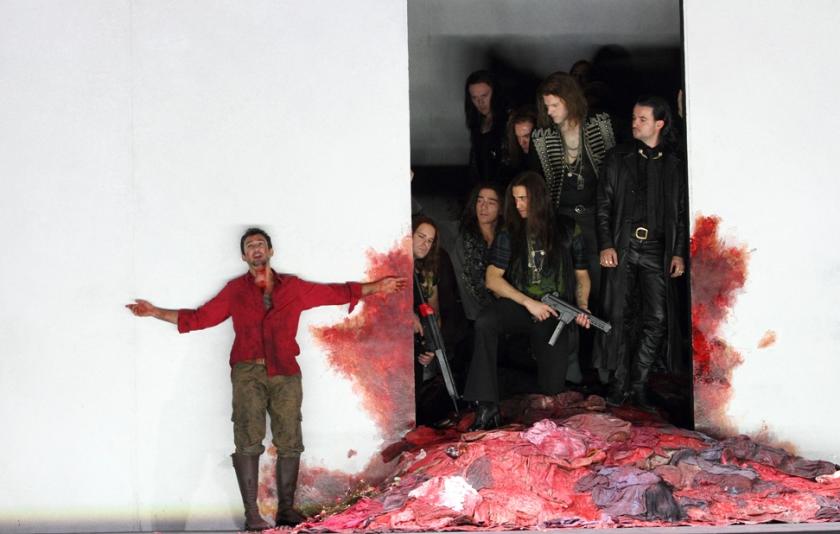 Chuck out a cosmic dimension in favour of power struggles, though, and they’d better not be petty or ludicrous, as they are in this case with posturing blokes in black suits and reflector specs, a hardly threatening bunch of Goth-priests – all the Goths I’ve met have been such nice people underneath – and weedy red-wrapped revolutionaries. There’s not a moment of human truth in this production, which makes it very hard on the singers.