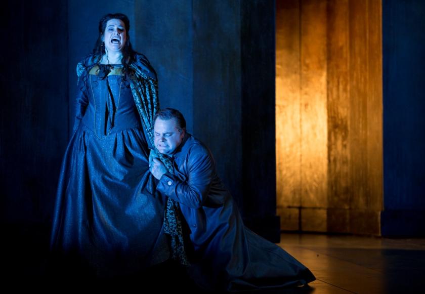 In musical terms, it’s a roaring success. But most of the production’s drama is squarely within the music, because there’s not a great deal of it in the rather unambitious, static staging. It falls uncomfortably between detailed naturalism and stylised conceptualism – all looming monoliths and projections of smoke and fire – and as a result feels like it does little to dig into the more serious themes behind the work’s macabre excess, or even to present that exuberance in all its gory glory. Too often the characters simply stand and sing at the audience. We may be moved by the subtleties and power of their vocal deliveries, but it’s hard to feel particularly compelled or convinced by the storytelling.