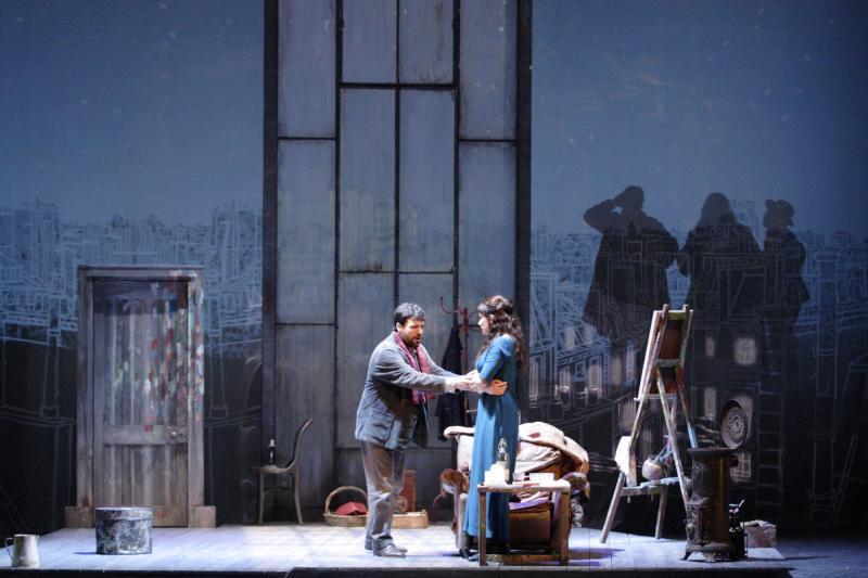 Annabel Arden’s new production for WNO answers that question more than convincingly. She makes no great statements; we’re not lectured on art as redemption or disease as moral sickness. The action is not transported to the White House or the Welsh Assembly, Rodolfo is not reimagined (if that’s the right word) as Andrew Motion locked in an affair with Amy Winehouse. Instead we are in a Paris garret, perhaps a shade more recently than Murger, but not damagingly so; there is a big window, a chair and a stove. Momus is still in business. The marketers still need passports to get into the city at dawn. The artists starve and the snow falls. God’s in his heaven.