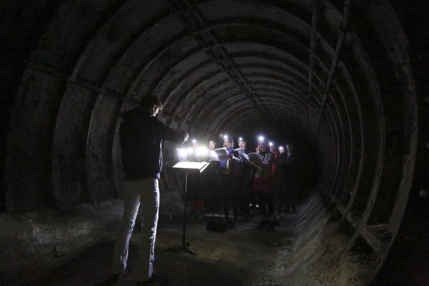 Next came a glimpse of heaven in a train tunnel. This was the real glory of the evening. Lamps strapped to their heads, the choir bobbed about in the dark, conductor Hugh Brunt and the tunnel’s miraculous acoustics helping to create a seraphic glow in this exquisite performance of Harvey’s marvellous choral piece The Angels. Is this tunnel not perhaps the best concert hall in London?