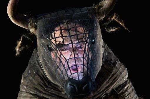 Flesh-tearing, woman-raping, body-goring brute he may be, but he's misunderstood, that Minotaur. It's a bold argument to make, but this is the contention of Harrison Birtwistle and David Harsent's 2008 opera. They are aided by a surprisingly cuddly performance from John Tomlinson. Head trapped in a prosthetic bull's cranium, hairy belly flopping out, a small stick-on penis standing to attention, Tomlinson is a reluctant and eloquent (if still pretty hideous) half-man, half-beast, soliloquising soulfully on his existential crisis (that of being treated as all-beast when he sees himself as mostly man).
