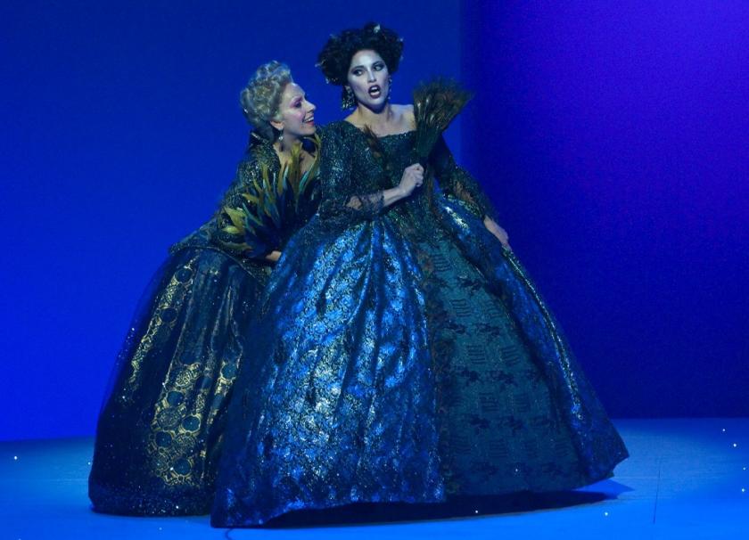 With the emergence of this snaky, sexy, sequenced, Enlightenment glam rocker (pure Peter Greenaway) - whose glistening red tails and bizarre cavorting (not quite hash-induced, not quite cocaine-induced, not quite lost, just weird) mirrored perfectly the slinky bejewelled duplets on oboe and strings that Rousset was conjuring up - and her knowingly stagy, androgynous cabaret performance in dark glasses, the whole production took off. And it repeatedly took off whenever she returned, even when she wasn't singing. The rest of the production - which never went one way or the other, surreal or real, divine or earthly, symbolic or natural - couldn't match up to this inspired idea, which burnt so bright that it consumed all around it.