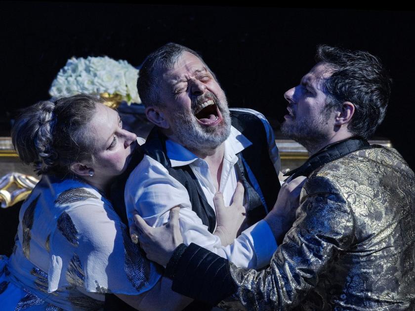 But when it comes to the final scene Slater is in his element. Suddenly something is happening (pictured above). There is a supper party, Tamerlano, fascinated by Bazajet’s intransigence, seems to be toying with his victims, there are angry exchanges, a thwarted attempt to poison Tamerlano, and then finally a tremendous scena for the dying Bazajet himself, the whole thing superbly stage managed and powerfully moving, in a way we might associate with the Gluck of Iphigénie en Tauride or even the Mozart of Idomeneo.