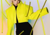 The backscreens pop alive. A wall of photographer’s flashguns. On cyberpunk crutches, Lady Gaga stumbles jerkily towards us. She sings her 2009 global smash “Paparazzi”, her arms clad in armour, on her head a metallic skullcap. Her corseted dress has a train that extends, diaphanous, floating back behind her the entire length of the long catwalk into the audience. It disappears into the darkness of an arch.