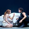 As the play begins to shape itself into a lightish tetralogue on the kindness – howsoever inadvertent and erratic – of strangers, Charlie/Braff hovers in his stock Venn overlap of near-hysteria and pressure-cooking peeve (“You seem like a very nice person.” “Do I?” “No!”), throwing up plenty of chuckleworthy scenarios, not least because the other three characters are more-or-less blatantly prepackaged to facilitate same: the stoned and flighty Emma (Eve Myles, pictured below with Braff) accidentally destroying a priceless African artwork belonging to Charlie's mate; the clued-up but constitutionally unstable Myron (Paul Hilton) reciting “Hath not a Jew eyes?” as a party-warmer; Kim (the delightfully curvaceous but perhaps somewhat underused Susannah Fielding [no, that’s not a leer]) explaining, a little coyly, that though she’s been contracted to do whatever might please Charlie, “between you and I, I’d prefer it if you stayed away from my asshole;” and Charlie, minute after frustrated minute, growing thoroughly sick of the lot of ‘em and their attempts to perk him up. “I’m guessing you don’t believe in the afterlife,” says Emma, cheerily. “No,” he replies, looking around him, “just Purgatory.”