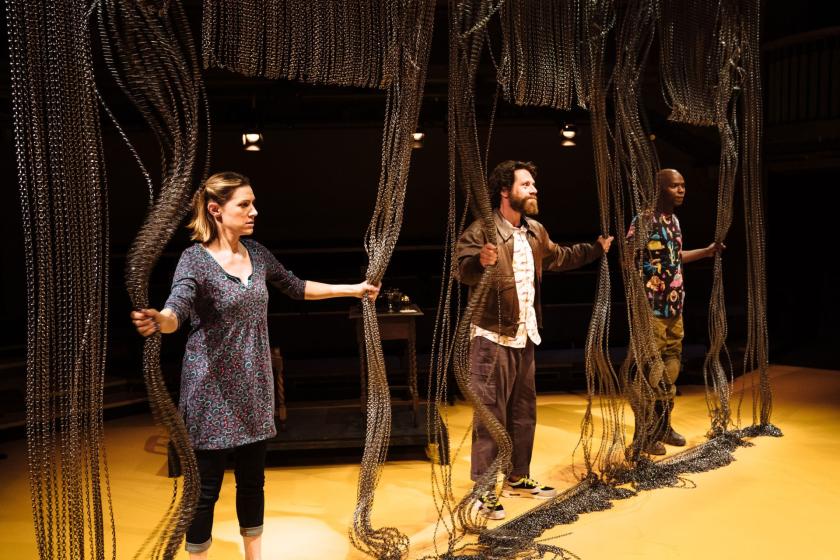 But it's probably not a great idea to freight an already-burdensome evening with a long set change, however much the curtain of chain that gets painstakingly pieced together allows for a cunning and faintly ominous visualisation of canal-side habitation. And the device whereby the actors silence themselves at the mere mention of genocide seems highly dubious: a faux-profound affectation too far for a play that has enough on its sobering mind as it is. Civility and peace seem fictive constructs by the time Amsterdam comes to its revelation-packed end. Wars continue into peacetime, as does prejudice, the play rightly suggests, even as its delivery leaves audiences awaiting the one, albeit metaphorical bell that matters most and allows us to escape the collective artifice and go home.