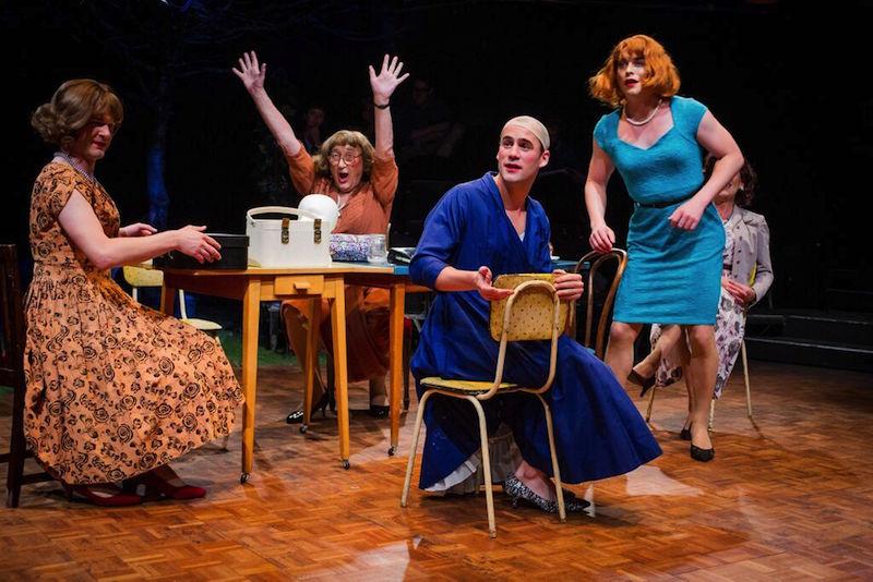 Open-minded Rita (Tamsin Carroll, pictured below with Matthew Rixon) runs an escapist Catskills resort with husband George (Edward Wolstenholme) and his alter ego, the winsome Valentina. Guests include regulars Albert/Bessie (Rixon), The Judge/Amy (Robert Morgan) and Michael/Gloria (Ashley Robinson), plus two newcomers: Jonathan (Ben Deery), making a nervous debut as Miranda, and magazine editor Isadore/Charlotte (Gareth Snook), who brings grand plans for out and proud activism.