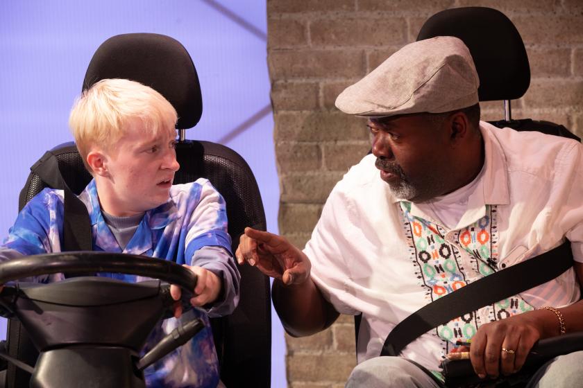 Max is big and black and Tyler is slight and (very) white, an odd couple trapped in a dual-control car as Max barks out his instructions and Tyler prepares for his driving test. If their relationship is to get started, like the clutch of the Vauxhall Corsa, it’s going to have to find its biting point. When the men reveal a little more of their insecurities, it does and we’re away.