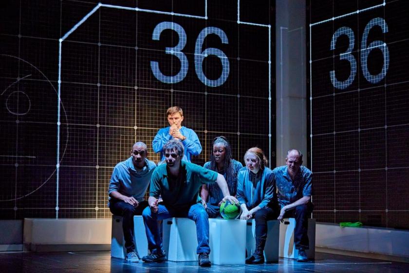The designer Bunny Christie's set (pictured right) is a stark cube, with the lines and letters of graph paper across the walls, there to be lighted at will. We see minimalist dots of colour: an orange plastic chair, yellow and black football, various folders. The action starts with Christopher confronting the corpse of the dog in question, brutally bloodied, with a garden fork stuck in it. Like any good detective, Christopher decides to investigate, dog murdering not being normal adult behaviour; Christopher senses innately that this event may be symptomatic of a larger crime. And yet it remains a mystery, as perhaps with any mental condition, as to how much Christopher's disabiltiies are a defence mechanism against the tension in the adult world around him: the affairs, arguments, incipient violence.
