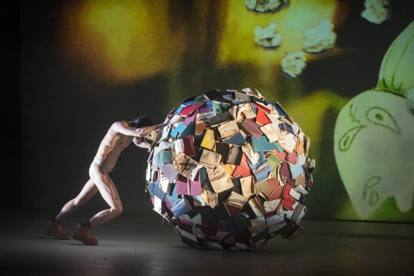 Buried somewhere in this cacophony is a two-act narrative split over some 30 years, linked by a time capsule jar prepared by giggling, cynical schoolchildren in the village of White Dews No 13 in modern Belarus. The kids sign their inconsequential letters; meanwhile soon all books will be erased of their titles and authors’ names, making every book look the same as every other, anonymised to meaninglessness, and mostly good only for burning. (A lot of time the theatre’s filled with the acrid smell of burning paper, and of the pungent cigarettes being chainsmoked by some of the cast.)