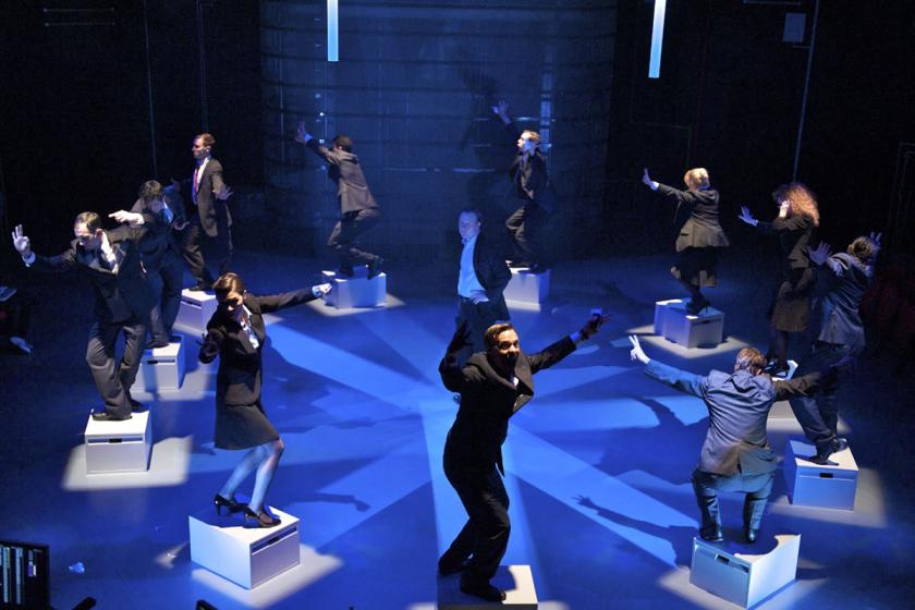 But the wonderful thing about the play is its clarity. Prebble explains the complex financial instruments developed by Skilling and Fastow by using a variety of theatrical devices, from the straight lecture to visual metaphors involving baby dinosaurs or light sabres. In Rupert Goold's compelling and dynamic production, which was first staged on a larger thrust stage at the Minerva Theatre in Chichester, a multitude of other effects, from song-and-dance numbers to vivid caricature, make this a thoroughly engrossing evening. I particularly liked the portrayal of Lehman Brothers as a pair of conjoined identical twins. With a Broadway transfer on the horizon, the question is: will American audiences appreciate it as much as we do?