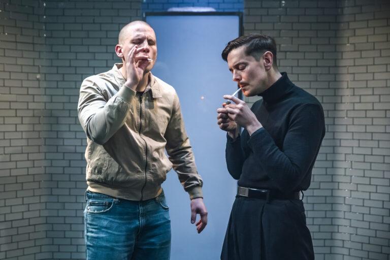Jake Richards (pictured above with Kishore Walker) is tremendous as Nicky, early bravado sliding into fanaticism before crumbling into a body as broken as his ideology. But we’re never quite invited to dehumanise him as he would have us dehumanise others. Harry McDonald, writing only his second play, avoids the easy option of making Nicky a caricature monster and director, Matthew Iliffe, eases just enough fragility out of Richards’ hulking presence to allow us to glimpse the man he could have been. Whether that does enough to acknowledge the genuine victims of Nicky’s appalling violence is perhaps moot, but it makes for fine drama.