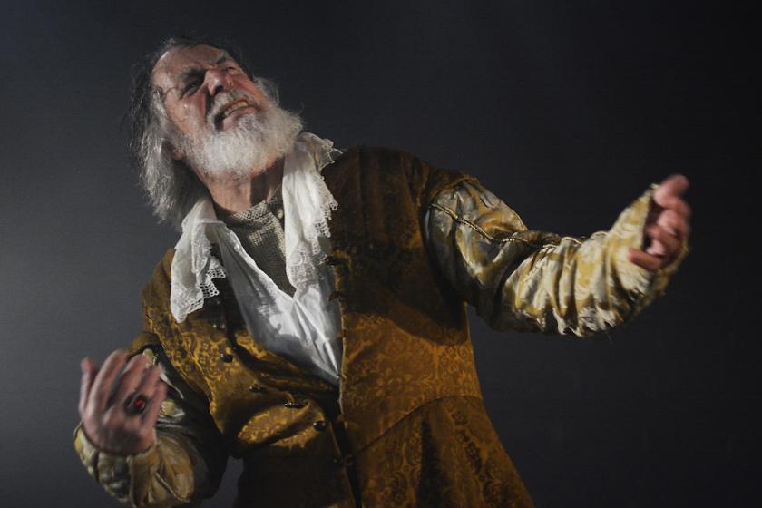Jonathan Miller’s new King Lear is rustic to its core, spoken in broad Northern accents, and the whole production could be packed onto a travelling theatre’s wagon and taken around Britain pulled by a couple of shire horses.