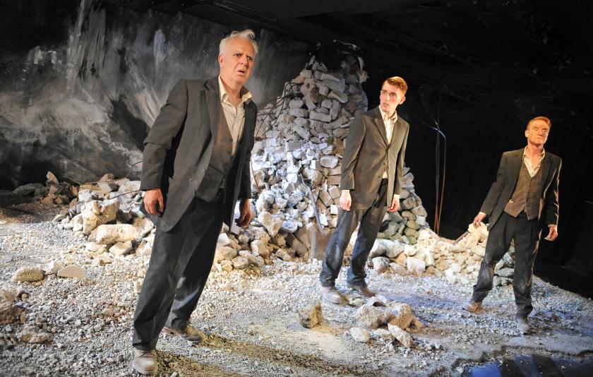 Comprehension is not helped by Pitman Wallace’s production, which gives the three men plenty of hard work to do with shovels and picks, none of it remotely convincing, but all of it effectively distracting. In a dusty, hard environment, the actors do their best with this difficult tale: as the Young Man, Anthony Delaney’s freshness and spirit contrasts well with Owen O’Neill (award-winning one-man performer and adaptor of The Shawshank Redemption) and his passionate intensity. By the end, both men are eclipsed by Gary Lilburn (pictured above right), who achieves a haunting resonance in his final speech. But, even at 70 minutes, this is an intractable and gruelling evening.