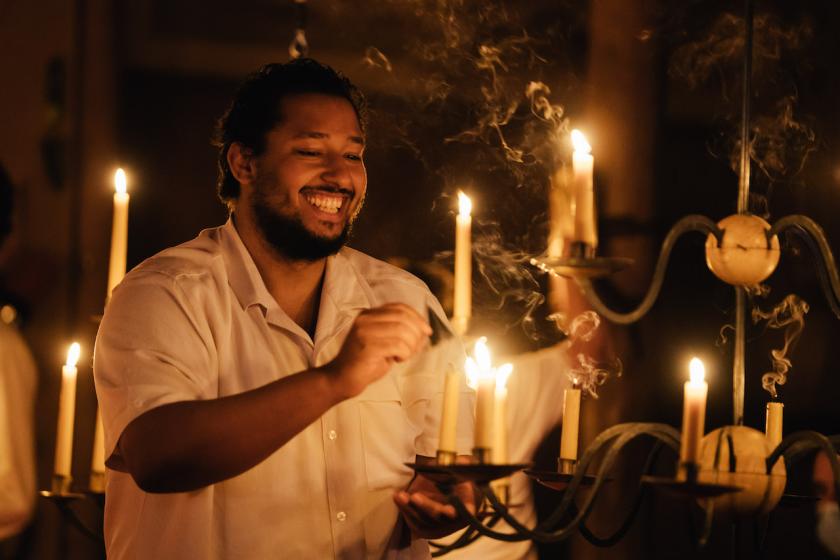 Grace Smart’s clever design sets up the backdrop like a hardware shop where everything from watering cans to a deer-skull are hung up, ready to be grabbed to help tell a story. Simeon Miller’s candle consulting skills as ever wonderfully heighten the atmosphere. The result is a fantastic relaunch of one of London’s most beautiful theatrical spaces, a provocative reworking of a classic that’s bracingly modern without ever seeming contrived.