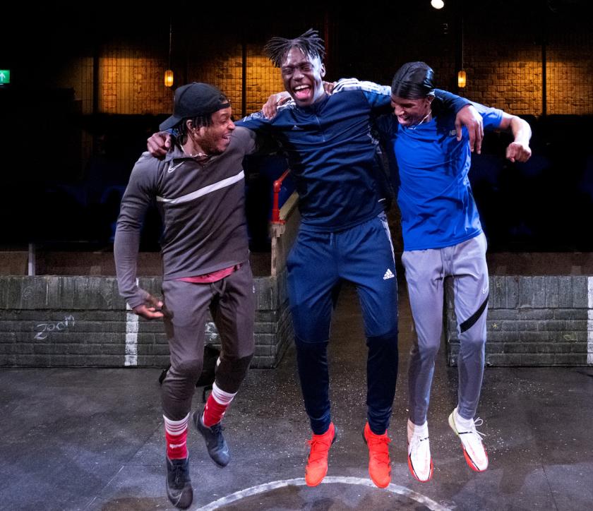 Daniel Bailey directs Francis Lovehall (Omz), Emeka Sesay (Joey), and Kedar Williams-Stirling (Bilal), familiar from Steve McQueen’s Small Axe and Netflix’s Sex Education series, in a glorious 90 minutes of high energy performance. In this buzzing show, apart from a few moments of deep reflection, no one stands still. The actors embody their characters with utter conviction, amid constant nimble football moves and a joyous dance sequence. Helped by movement director Dickson Mbi and designer Amelia Jane Hankin, they are pitch perfect. To the background sound of construction work, and the foregrounding of dance music, this excellent piece of new writing is effortlessly and energetically entertaining.