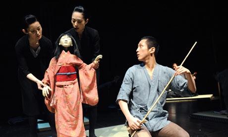 With the visual hallmarks of Complicite everywhere (a swiftly fluttering sheet of paper becomes a bird, swaying wooden poles take the place of a tree, red darts of paper animate a head wound), the show lives in its details. Narrative is linear and uncomplicated, analysis and conclusion are limited; it is the visuals and the minutely crafted assembly of component parts that create the allusive space that render Shun-kin more than a pretty exercise in storytelling.