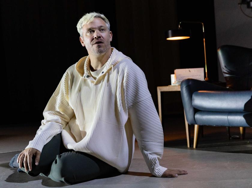 But a dramatic laying bare isn’t what the play achieves; it’s more of a gentle unpeeling, in that beguiling way Stephens has as a storyteller, but without the stinging blow he landed in his 30-minute monologue Sea Wall. This is a longer piece (80 minutes), but it feels slighter and more oblique, though both are studies in grief. Willem isn’t even addressing the audience in a wholly direct way: most of the time he is reading us the letters he wrote from the Lloyd Hotel in Amsterdam to his younger brother Pauli during a recent visit for a family funeral. The hotel room was his preference over staying at his family home. The funeral was Pauli’s, dead from a heart attack caused by an undiagnosed underlying condition.