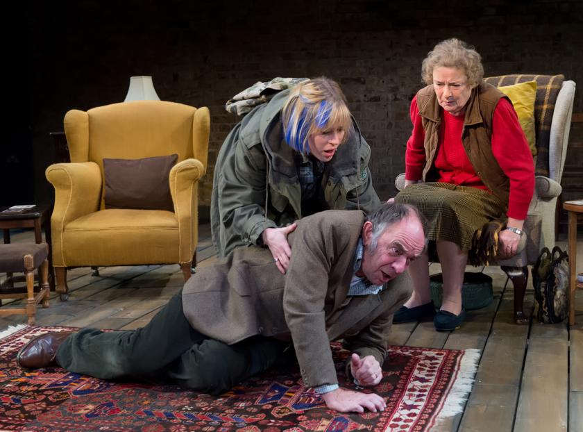 All this makes for a tender play, carefully directed by Alice Hamilton for the Up in Arms company. Her cast is superb: Linda Bassett (Edie) delicately performs her character’s sudden shifts from dwelling in the past to acute awareness of the present. Robin Soans is perfect as the grumpy Arthur, and together they are absolutely convincing as a long-married couple. Simon Muller as the awkward Stephen and Eleanor Wyld as the kind Kate are excellent too (both pictured above with Bassett). This is a moving evening, but the play’s meticulous naturalism sometimes sits uneasily with its poetic realism, and it lacks contemporary bite.