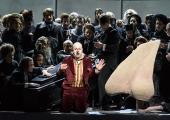 Those two historical figures, living in their clearly defined moment, are joined by another couple, less directly but somehow more organically connected to locus. Stalking the museum’s halls Sokurov gives us the memorable pairing of the Emperor Napoleon (Vincent Nemeth) – responsible, of course, for much of the enlargement of the Louvre’s collection, as well as its establishment as a public gallery – intoning periodically “C’est moi”; and the tricolour personification of France herself, Marianne (Johanna Korthals Altes), visually appropriated from Delacroix’s Liberty Leading the People, with her chant of Liberté, égalité, fraternité. In one scene, the two of them ponder the Mona Lisa: not the least advantage of having unfettered, after-hours access to a great space like this is the chance to see it without any other visitors. (Pictured below left: Johanna Korthals Altes, Vincent Nemeth.)