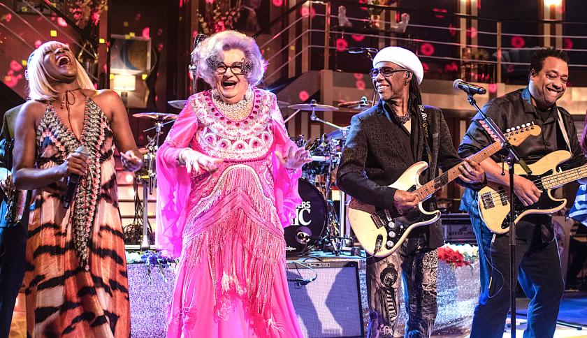 At 85, the Dame isn’t as laser-sharp as she was 20 years ago, and her guests wore barcode badges so Edna could flash up their details on a screen, but you wouldn’t dare play poker with her. The fiction for this BBC One show was that she had taken to the high seas on the cruise ship Ocean Widow to safeguard her ill-gotten earnings, having been “inappropriately touched by the taxman”. Otherwise it was business as usual, though Edna’s erstwhile mute companion Madge Allsop is now deceased (“she’s no longer with us but the chair is still damp,” quipped the gross-out Dame) and has been replaced by her sister Mabel, a husk of a woman easily mistaken for a corpse.