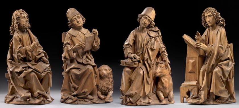 Tischbein Goethe in der romischen, 1787. Städel Museum, Frankfurt am Main. © U Edelmann, Städel MuseumHere is a Holbein of Erasmus from Basle, and exquisite German romantic paintings of landscape from Carus to Friedrich. There is a Gutenberg bible, and the four Evangelists, carved in wood by that superb Bavarian Renaissance sculptor Tilman Reimenschneider (main picture). The huge and awkward portrait of the national cultural hero Goethe, writer, poet, botanist, by Tischbein (pictured above left) has a wall to itself. The poet reclines in the Roman Campagna, ivy crawls over an ancient frieze, Germany’s national tree, the oak, is visible, and Goethe, for some obscure reason, has two left feet. Ironically it was given to Frankfurt, a century after it was painted, by a Rothschild.