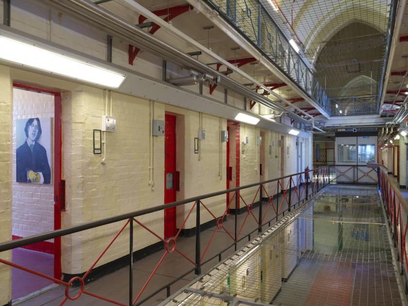 Entering the cells (pictured right: Oscar Wilde's cell by Morley von Sternberg), you sense the misery of being confined in a space measuring 13 feet by 7 foot 6 inches with a high window that provides a glimpse only of sky. Furnished with a metal bed, chair and table, the cells are cold and cheerless as well as tiny; by the time the prison was decommissioned in 2013, as many as two or three inmates were crammed into these stark little rooms. No wonder they scrawled obscenities on the walls, such as “FUCK HMPS” and “I’m still here you bastards, 2002-2009”. One bright spark wrote “Room Service” beside the emergency call button.