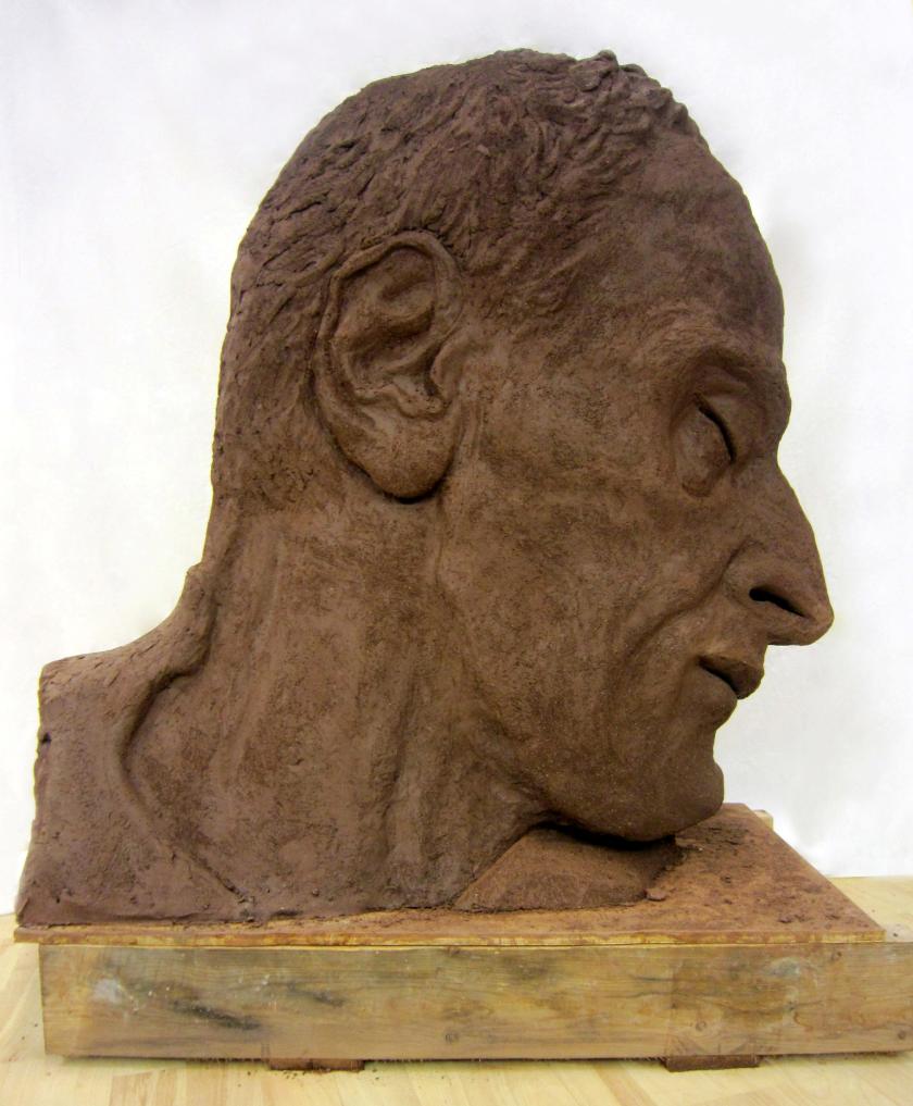 The work is called EarthStone Triptych, and, as the title suggests, the sculpture comes in three parts. If you look at the work head-on, centrally, you’ll encounter a rather ferocious, attenuated full-face portrait. There is something rather shockingly reptilian in its aspect. And the work encapsulates more than an image of Freud in life and in death. Face-on we encounter a coiled, pent-up force, an energy, that might at any moment be unleashed. McAdam Freud describes it as cobra-like. It’s an astonishingly tender and powerful work. Like Freud, or perhaps much more than Freud, McAdam Freud is faithful to a meticulously observed likeness.