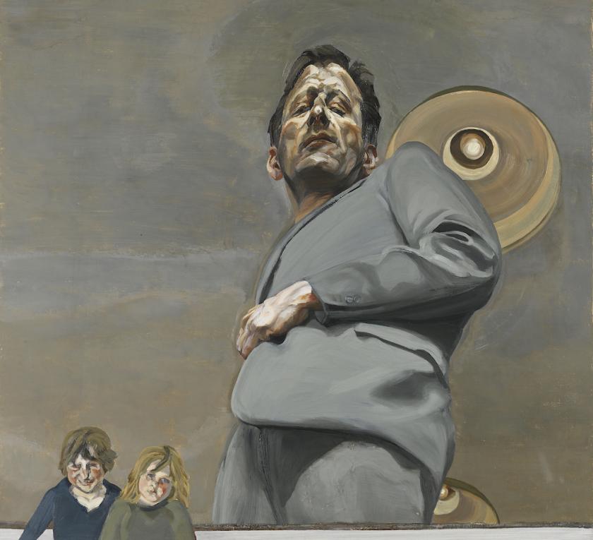 There stands Lucian Freud in Reflection with Two Children (Self-portrait), 1965 (main picture) towering over you, peering mercilessly down. Is that a look of scorn on his face or merely one of detachment? His two kids seem to be squirming and giggling beneath their father’s unblinking stare. Who wouldn’t be, especially when the huge lamps hanging overhead are reminiscent of an interrogation chamber? All the better to see you with, my dear.