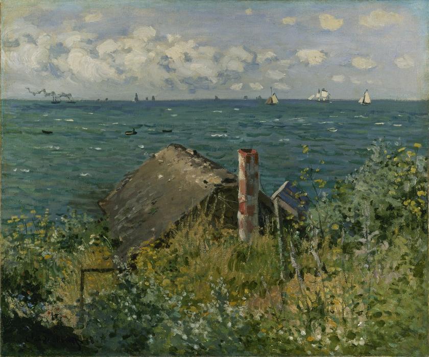 His views were both accurate yet also carefully edited, emphasising what caught his eye and eliminating distractions. The charming, the attractive, the readily accessible and the everyday – not to mention what appears to be his real subject, the evanescent, volatile nature of changing light, the notion of time passing, and time captured – is anchored in Windmills Near Zaandam, 1871, by the almost wholly man-made environment of Holland, or in The Hut at Sante-Adresse, 1867 (main picture), the fisherman’s shack on the coast, paintings both made when Monet was still in his twenties.