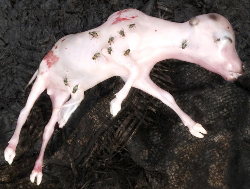 Gelder used to be a painter, and has a classical painter’s eye and a sense of art history. One particularly affecting image, different from all the rest, shows a perfectly formed calf foetus (main picture), its skin smooth and sheeny like pink opal, but already attracting flies. Here too is a powerfully disquieting evocation of beauty and dislocation.