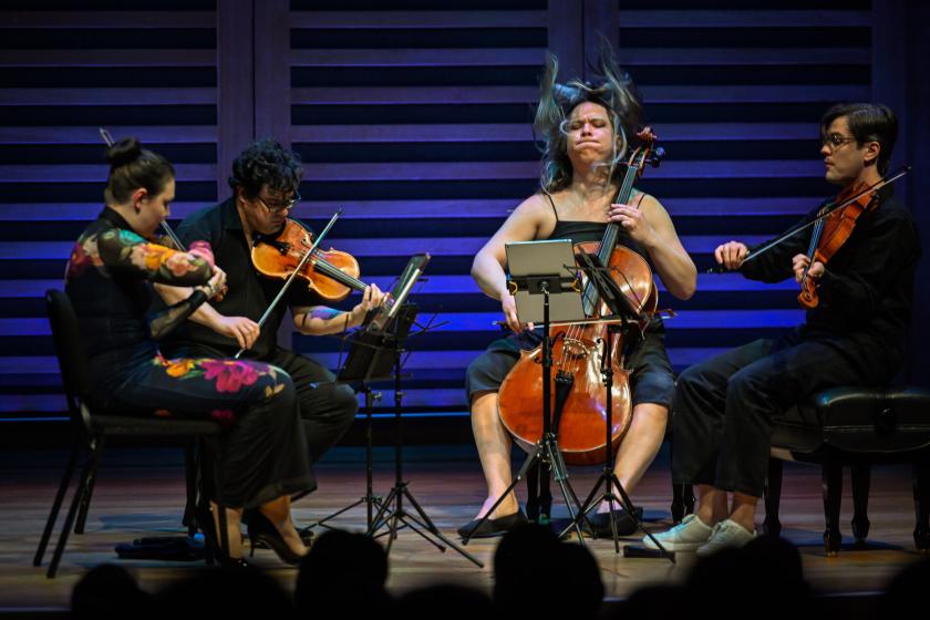 You can hear memories of Vivaldi’s Spring in the eddying exchanges between Amy Schroeder and Domenic Salerni’s two violins that blur and flicker in and out of one another over barely-there plucked accompaniment from Nathan Schram’s viola and Andrew Yee’s cello. It’s a folk-sweet little theme, gradually intensified as the viola joins the close-woven melody and volume swells. Both movements play out the same process: an exercise in musical tipping points. When and how does something fragile and lyrical tip into violence? How many times can you say something before repetition itself negates the sweetness of what’s being said? Lang’s post-minimal processes supply two different answers.