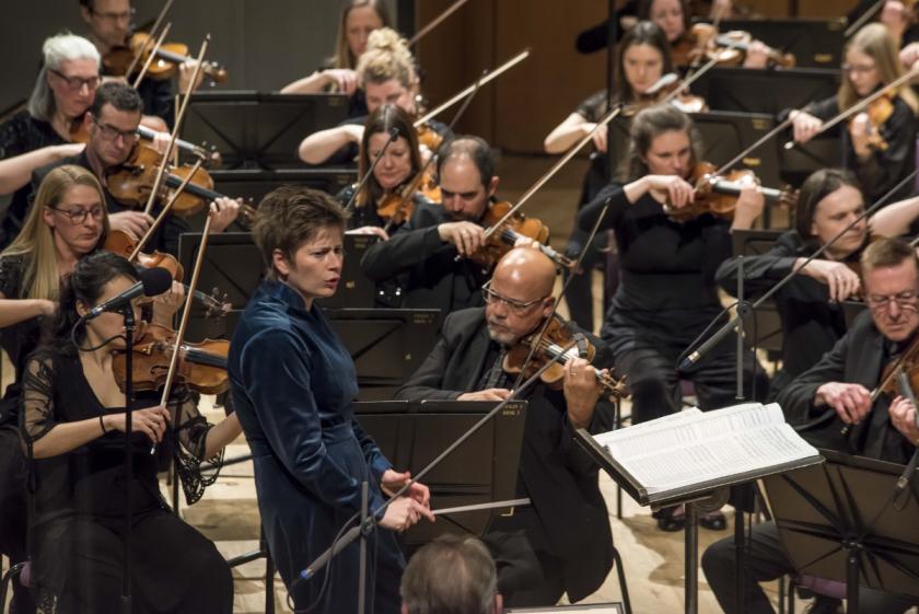 For Emilie Mayer’s Symphony No. 5 in F minor we were taken back to the Europe of the mid-nineteenth century, when Mozart’s and Beethoven’s shadows loomed large and music had its rules. Mayer was a contemporary of the Mendelssohns and Schumann but was able to pursue a composer’s career only after the early death of her father, blossoming in the era that welcomed a number of their imitators. This symphony steers a cautious path between convention and experiment: there are four movements, the first a sonata movement with the expected contrasting main themes, the second an Adagio, varying a song-without-words melody, the third a Scherzo and the finale exuding busy optimism.