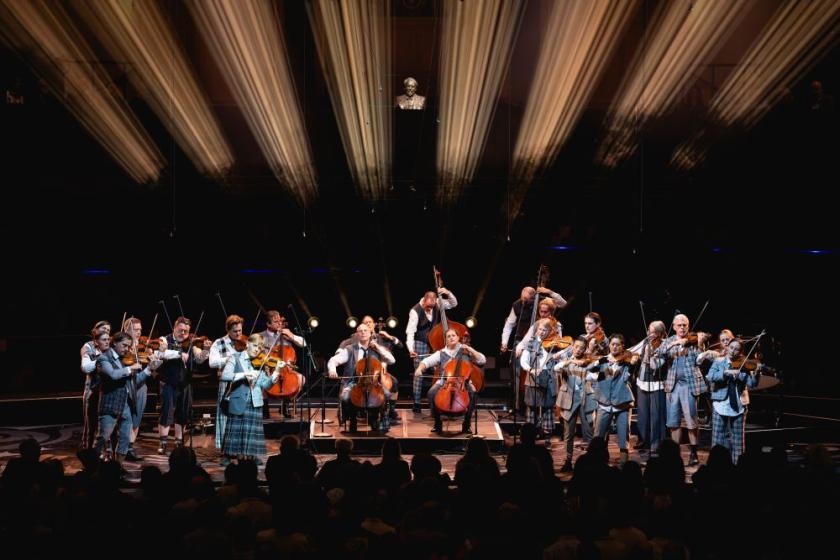 The continuity would have worked without applause in between, and after that powerful number, Barruk went offstage for a bit. The choice of string pieces, though, was fine: exquisitely so Tippett's "A Lament" from the Divertimento on Sellinger's Round and above all the still, flowing centre of the first half, Reger's arrangement of Bach's Chorale Prelude "O mensch, bewein dein Sunde gross" – please note, string orchestras, the perfect, profound encore. Hannah Kendall's Werroon Werroon was mere connective tissue; Glass's "Blood Oath" movement from the Third, "Mishima", String Quartet offered a dynamism within the short space that always suits him best. Barruk, NCO, Kuusisto at the PromsAfter the interval, Kuusisto and Company were sporting the kilts and suits Maja Ravan had made them for their stunning 90-minute Concert Theatre DSCH. theartsdesk's Rachel Halliburton found this from-memory Shostakovich performance piece transfixing in London; I was lucky to catch its first airing in Oslo, actually the second time I'd experienced the Barshai-arranged Chamber Symphony from the group; the first was at Gothenburg's Point Festival under their equally inspirational previous artistic director Terje Tønnesen, where they segued into it straight from Beethoven's Grosse Fuge.