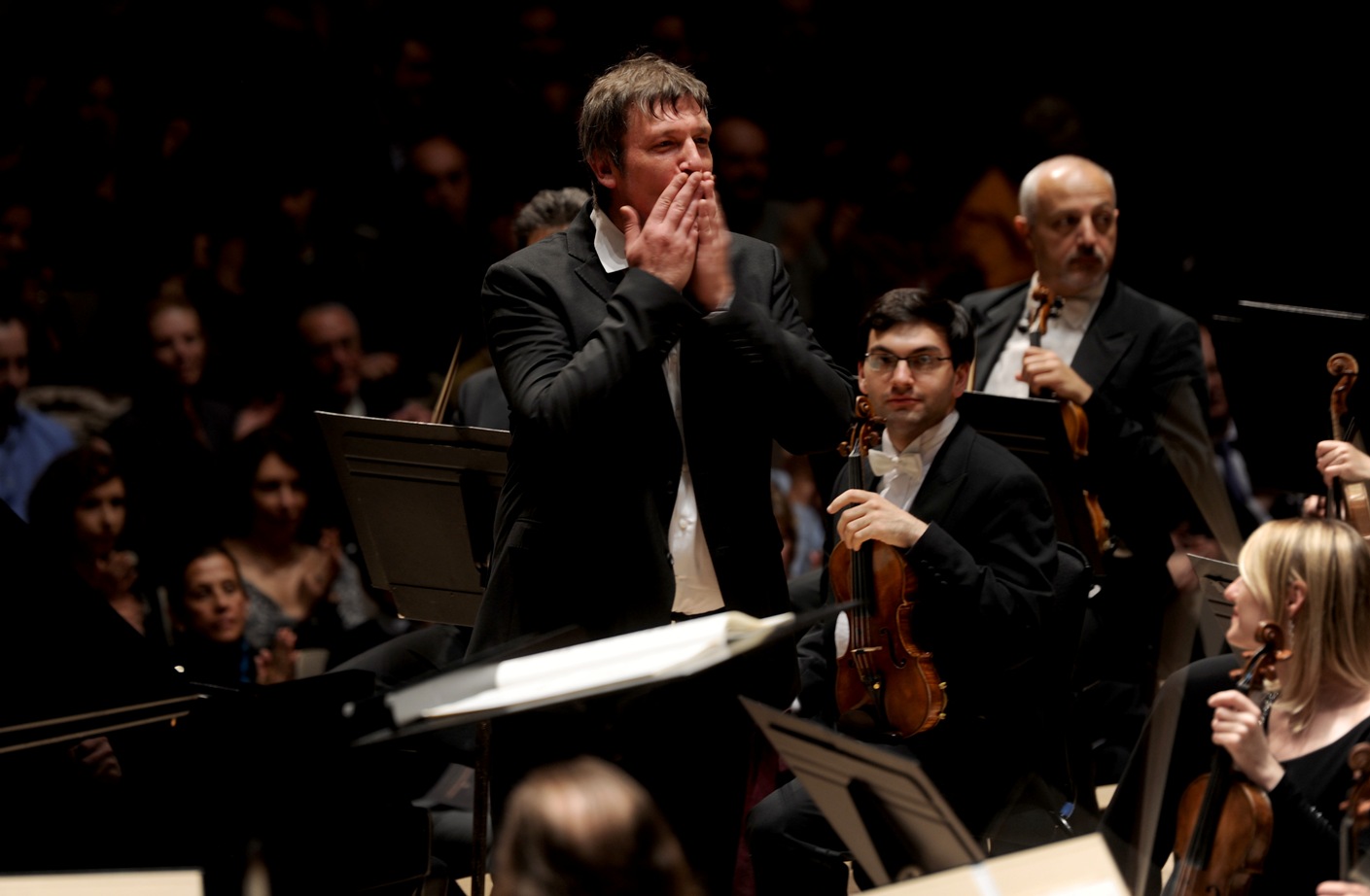 The Suisse Romande brass (last night's team pictured above by Jas Sansi) – bright but not quite perfect in ensemble - still need streamlining, and not all the orchestra's woodwind are real characters. First flute and horn, though, certainly are, and they made their mark in the Grieg Piano Concerto almost as much as the ever-surprising Boris Berezovsky, in true partnership with Järvi. Theirs was a fresh take not quite of this world, and decidedly out of it when Grieg pulls his last, and finest, melody out of the bag in the finale. Odd, then, that Berezovsky (pictured below by Sansi) and Järvi encored the slow movement, which seems to me in search of a tune like that; I was expecting the maverick pianist to play one of Grieg’s Lyric Pieces, or his celebrated Medtner. But it’s unfair to carp when he had tackled a showpiece with the lightest of touches and the subtlest of rubato, both perfectly matched by his conductor.