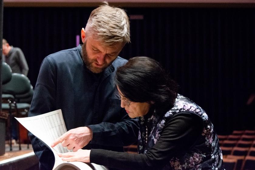 Cue the world premiere of Franghiz Ali-Zadeh’s new work NIZAMI Cosmology commissioned by Karabits and the BSO. The conductor very helpfully introduced the music from the podium as well as drawing a pertinent line of inheritance from Shostakovich through Karayev to the present-day composer. Nizami has been an inspiration for both Azerbaijani musicians, especially his writings exploring the influence of the sky, comets and the stars upon the development of different peoples on our planet and how they link to Franghiz Ali-Zadeh’s own aspiration to build stylistic musical bridges between Eastern and Western culture (the composer pictured below with Karabits)..