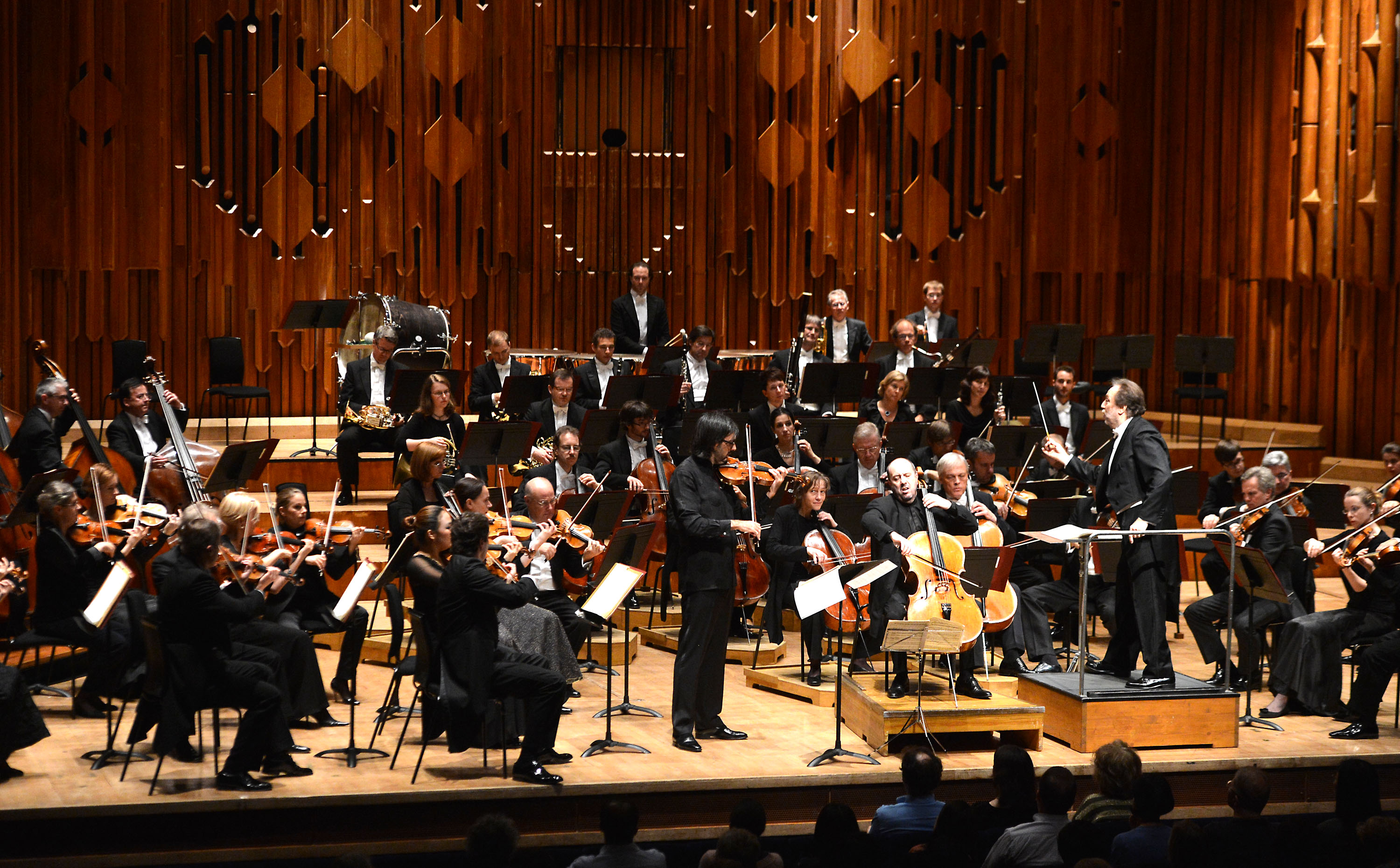 Chailly is neatly lining up the four symphonies with the four concertos - and first up were Leonidas Kavakos and Enrico Dindo (pictured with Chailly and the orchestra below) in the Double Concerto. The opening statement from the orchestra was a throwing down of the gauntlet if ever I heard one: emphatic, arresting, cut to the bone. Cellist Enrico Dindo then soliloquised in Shakesperian fashion, a whole range of colours suggesting a whole range of emotions, all within a couple of minutes. Kavakos’ violin parried but the drama, gruff and gritty as it was, was in the conversation, now conciliatory, now confrontational. The telepathy, chemistry, call it what you will, between Kavakos and Dindo was self-evident and challenging and even that prayerful slow movement tune refused to linger. Mellow it was not.