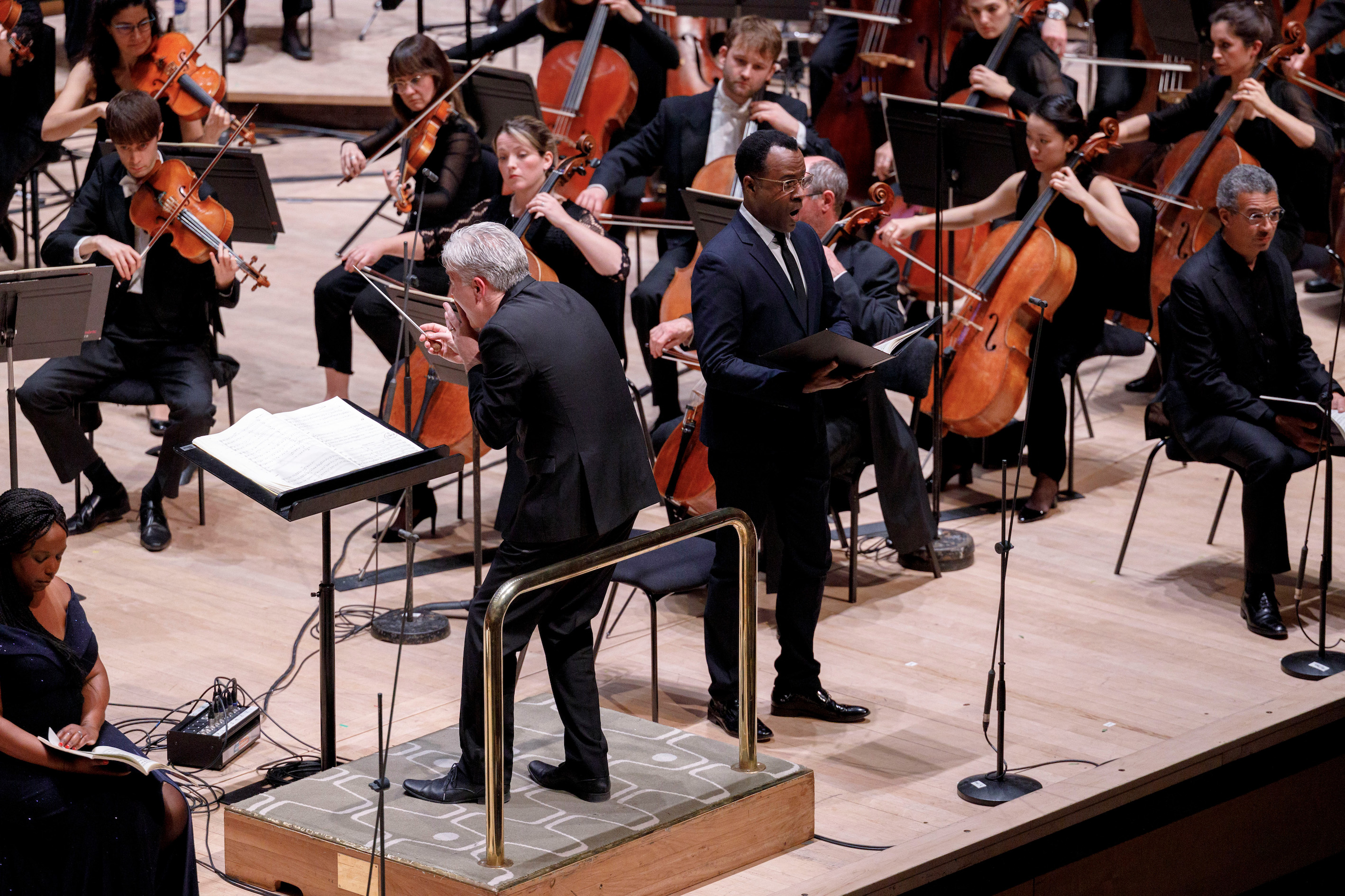 Part II narrows down a general malaise into the story of the (unnamed) teenaged Jewish refugee, Herschel Grynszpan. His killing in Paris of a Nazi diplomat gave Hitler a pretext for Kristallnacht in November 1938. Grynszpan’s tragedy, as a scapegoat “child of our time” pushed into terrorism by despair, becomes an archetypal confrontation between light and darkness. It tempts Tippett into a few verbally portentous touches. His music, though, never loses its directness and humanity. Williams’s nobly-voiced narration kept us grounded before another spiritual (“Nobody knows the trouble I see”) intervenes to offer balm and healing. As in Bach’s Passions, the chorus must manage some lightning changes of emotional costume. They curse and spit chillingly as a refugee-baiting baying mob (“Burn down their houses! Beat in their heads!), but then switch to the overwhelming, redemptive dignity and anger of “Go Down, Moses”: an absolute show-stopper, beautifully executed. As the “Boy” and his Mother, Tarver and Benjamin humanised the fable with nuanced, expressive shaping of their lines. Meanwhile, the LPO’s keening strings and plangent woodwinds channel the “dark voices that rise like a flood”.