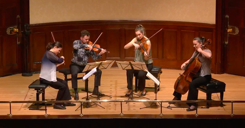 The Elias has a sinewy, muscular tone, with keen focus of line and well-balanced ensemble. Their sound sometimes lacks warmth, something the Wigmore acoustic can usually compensate, through not under the close miking of this webcast. The violin tone of leader Sara Bitlloch (pictured below) clearly defines the sound, her playing direct and clearly articulated. But she does not dominate, and the textures often seem built from the bottom up, with Marie Bitlloch on cello (they are sisters) grounding the sound with her prominent and dark bass voice. Sara Bitlloch, leader of the Elias QuartetOp 127 is the only one of Beethoven’s late quartets to be in a traditional four-movement form, and initially, the Elias players seemed at pains to emphasise the music’s 18th-century roots. The textures of the opening were muscular but expressive, and through the first movement, and the first movement was propulsive throughout. The second movement is a puzzle, a set of variations that sometimes fit together smoothly, but at other times sit in angular juxtaposition. Here, the players focussed more on the mood of each variation and let Beethoven’s awkward transitions stand. The violin melody at the opening set the tone, played expressively but with minimal rubato. The coda returns to this mood, but now with the four players passing the ideas around, a gentle and sensitive interplay. The Scherzo was a bit civilised, with Beethoven’s sporadic outbursts lacking weight. But the finale was more impressive. Beethoven seems to be in two minds here. He opens with a huge chordal gesture, but immediately recedes into less decisive textures. The Elias players brought out this dichotomy with huge dynamic swells, and an impressively guttural sound in the tuttis, supported again by that rich cello tone.