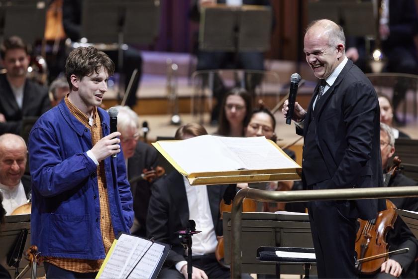More by accident than design, the living composers were bracketed by two great Hungarians. Admirably, Roth and the orchestra adapted to the sad news that Péter Eötvös, also a fine conductor (not least with the LSO) and an engaging human being, died a fortnight ago by featuring the shortest possible piece at the start: his impressionistic epitaph for "my maestro and friend" Luciano Berio, using full symphonic resources to create a brief nebula. It seems to start with the mysteries of Debussy’s Jeux underpinned by tuba, and quickly vanishes into the ether. Stef Conner with François-Xavier RothIf the programme notes suggested we were going to get nothing but similar textures at greater length thereafter – the dreaded “sound world” always suggests the triumph of atmosphere over substance – Christian Drew’s Aquarium Drifter offered an immediate corrective. Though Drew is fond of terms like “noodling” and “woozy”, there was a clear structure to this life aquatic, which took the shape of a continuous sinfonietta, and far from all the music of the past lying at the bottom of an iridescent lake, one particular neobaroque specimen seemed to break the surface in full sail. Bewitching and original “sound world”, too; the brass did Drew proud, and the woodwind managed to sound at times like a saxophone ensemble. I smiled from start to finish, and would happily have listened to the whole work again.